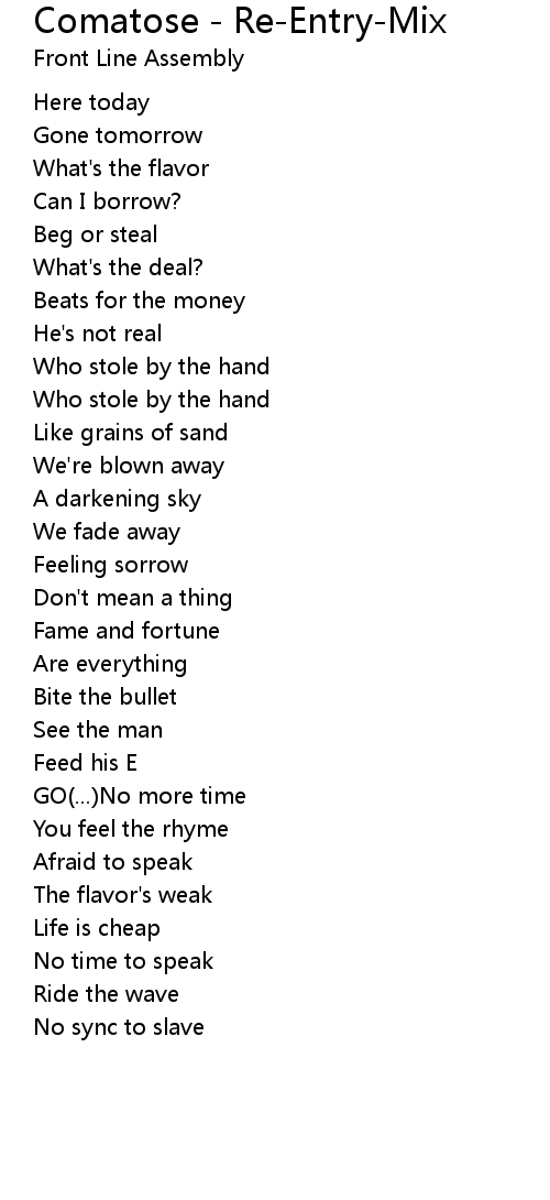Comatose - Re-Entry-Mix Lyrics