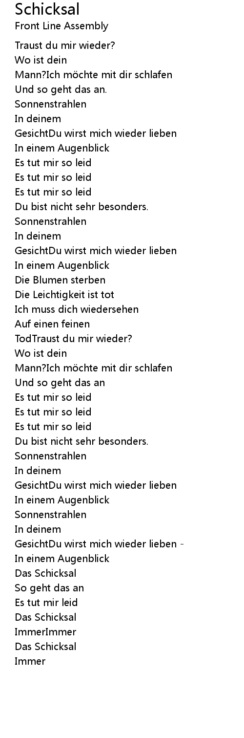 | Song | Schicksal |