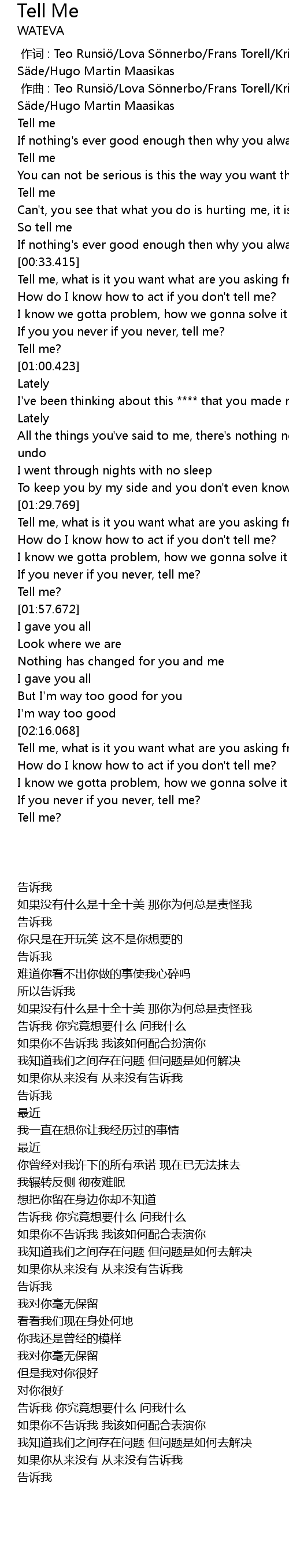 | [00:34.321] | Tell me, what is it you want what are you asking from me? |