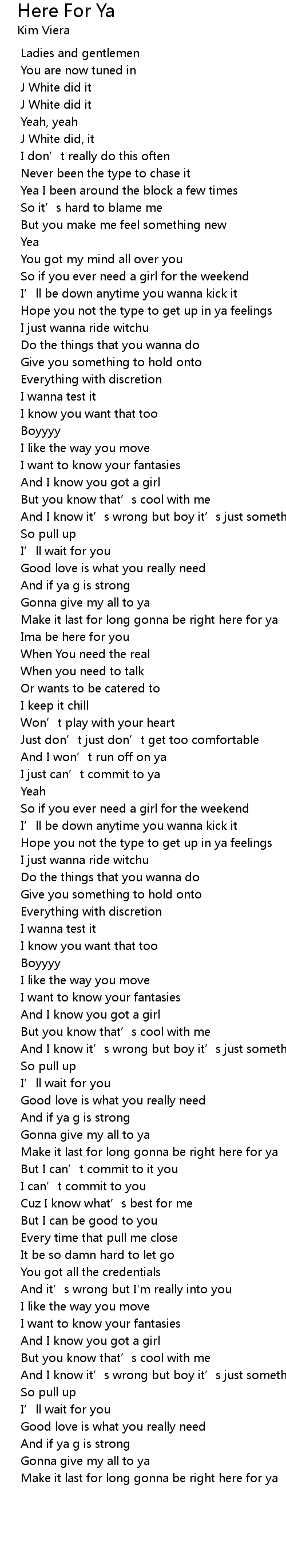 | [00:28.181] | So if you ever need a girl for the weekend |