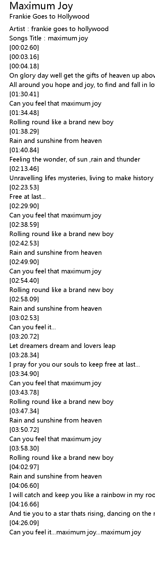 | [00:01.66] | Songs Title: maximum joy |