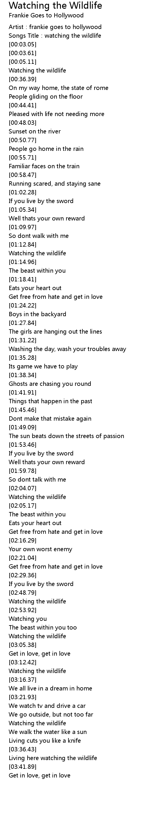 | [00:00.80] | Artist: frankie goes to hollywood |