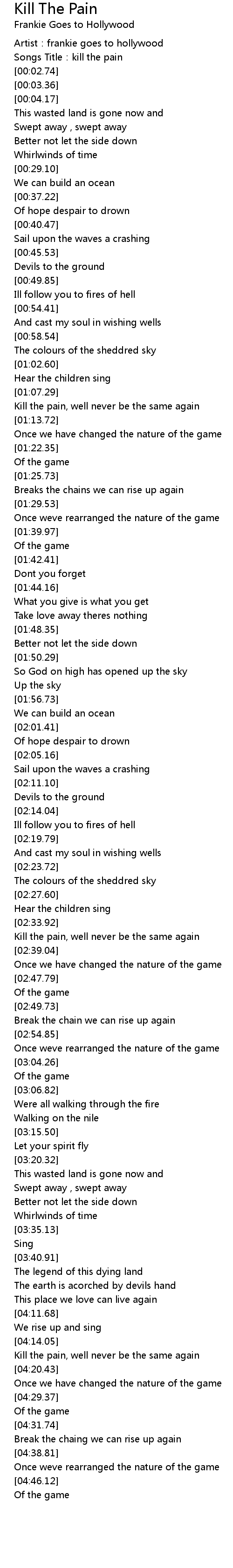 | [00:01.55] | Songs Title: kill the pain |