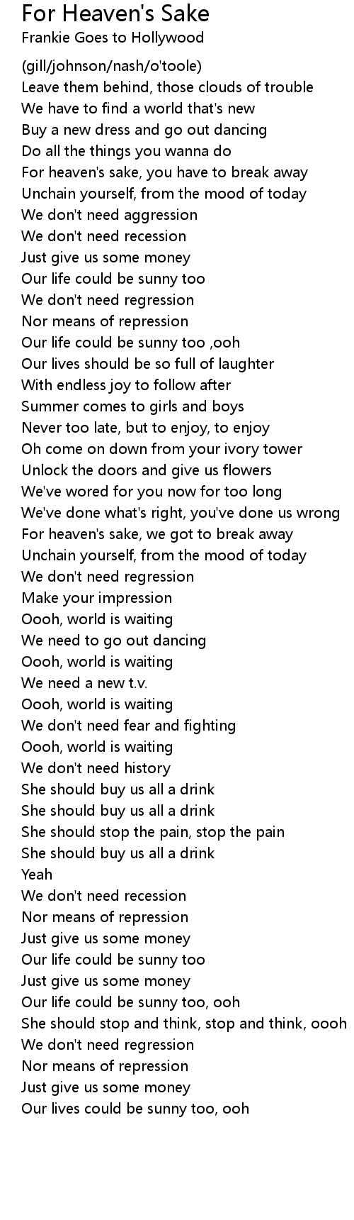 For heaven's sake, we got to break away |