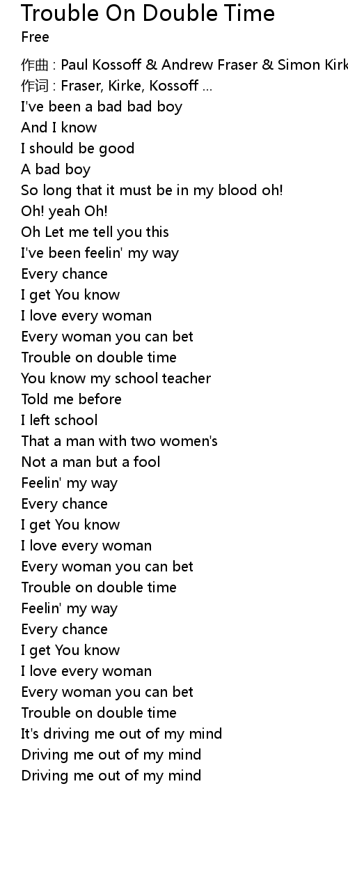 | 作曲 : Paul Kossoff & Andrew Fraser & Simon Kirke & Paul Rodgers | |