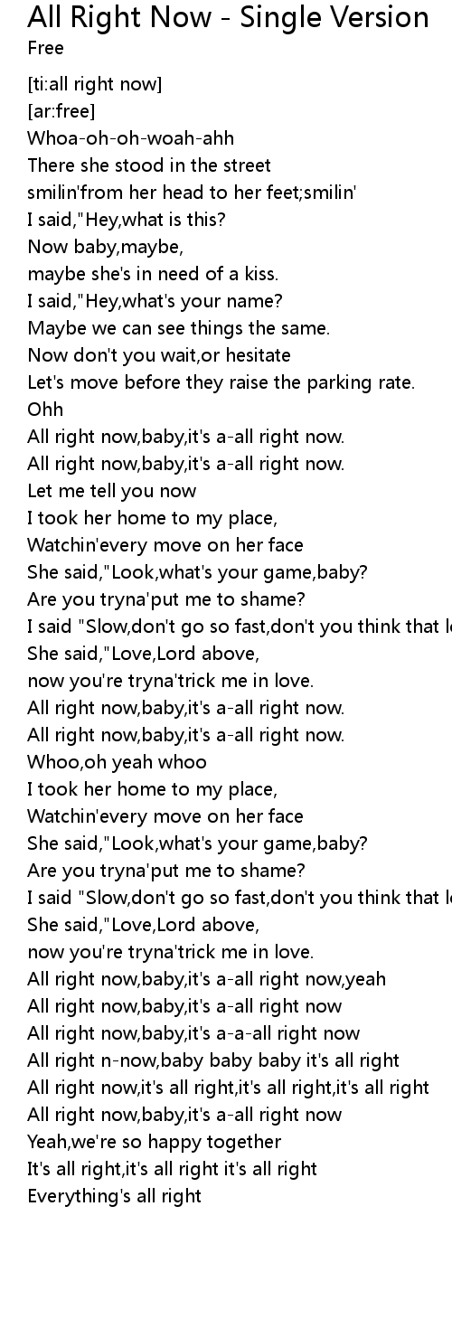 [04:24.350] All right now,baby,it's a-all right now,yeah
