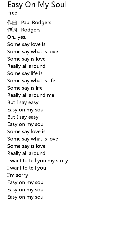 | Easy on my soul |