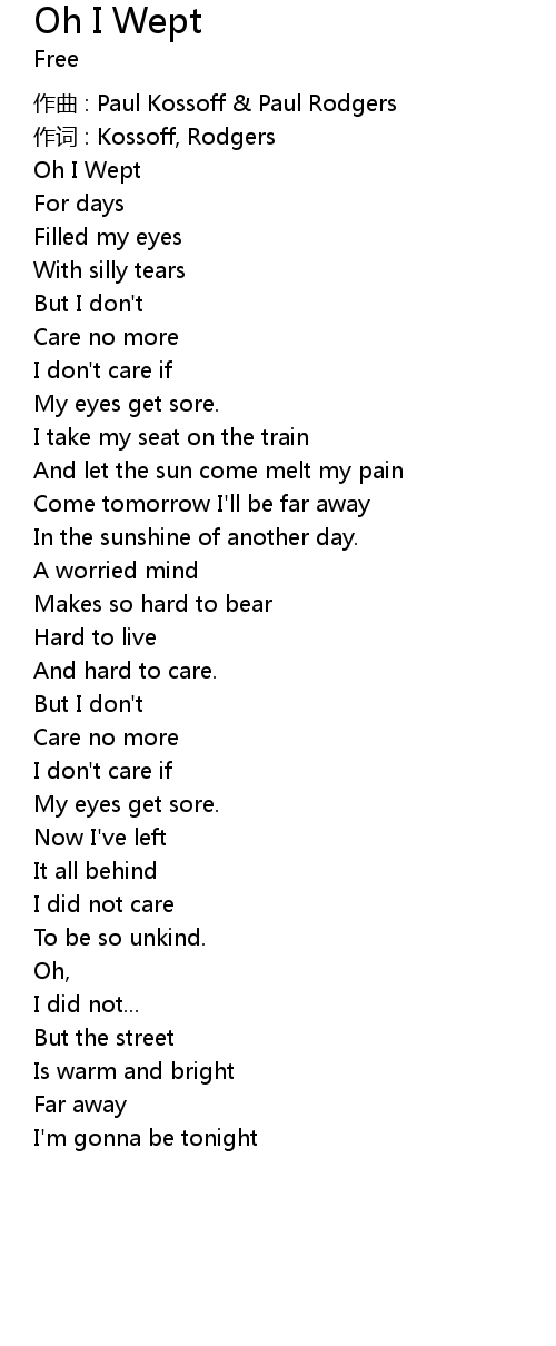 | 作词 : Kossoff, Rodgers | |