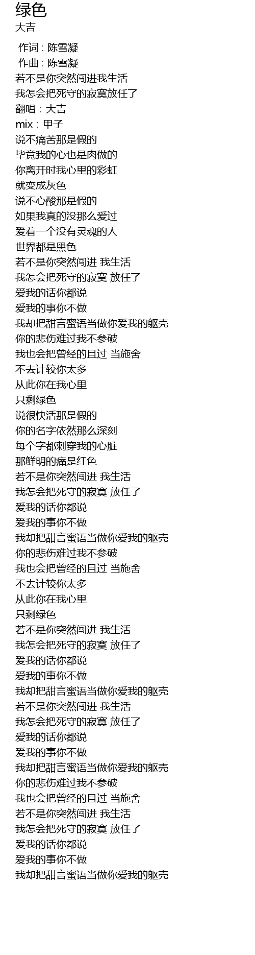 | [02:26.401] | 只剩绿色 |