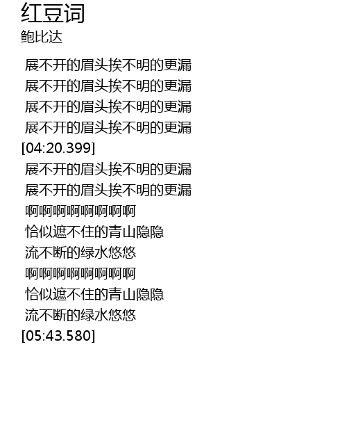 | [05:33.840] | 流不断的绿水悠悠 |