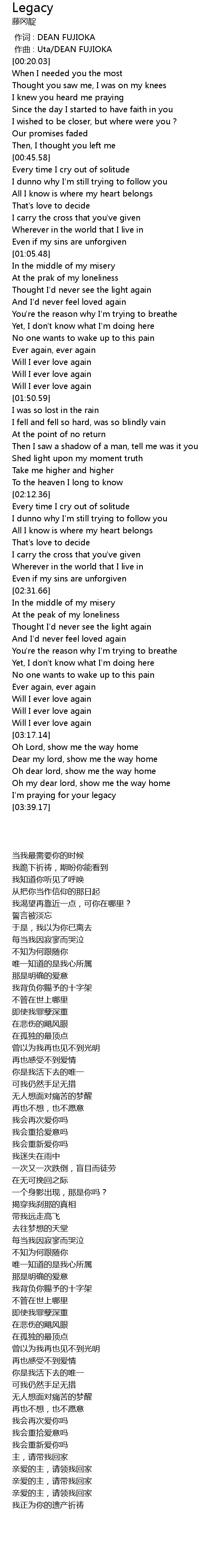 | [03:36.77] | I'm praying for your legacy |