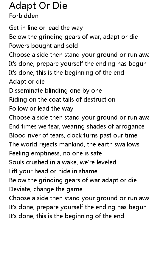 Below the grinding gears of war adapt or die |