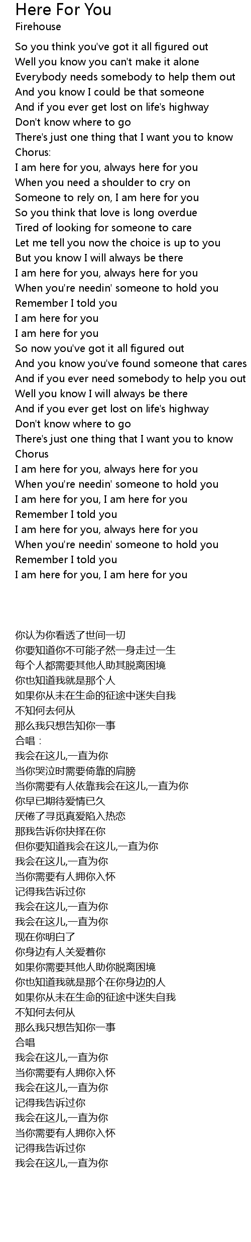 I am here for you, I am here for you |