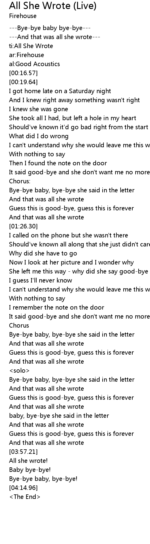 | [00:05.25] | ti:All She Wrote |