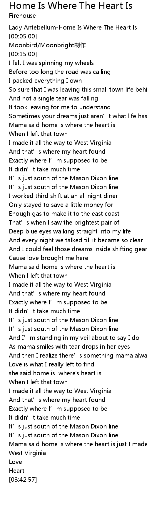| [00:04.00] | Lady AntebellumHome Is Where The Heart Is |