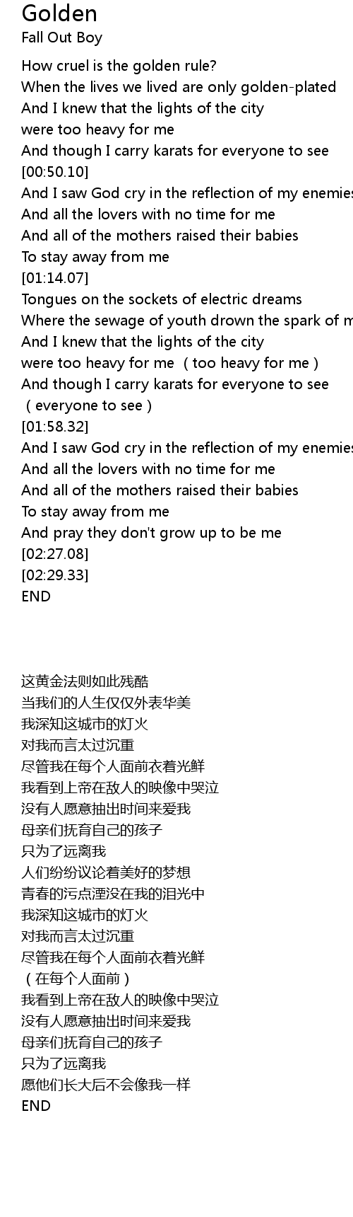 | [00:20.83] | When the lives we lived are only goldenplated |