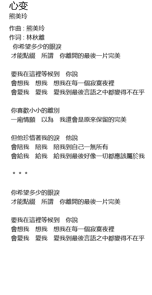 | 一廂情願 以為 我還會是原來保留的完美 | |