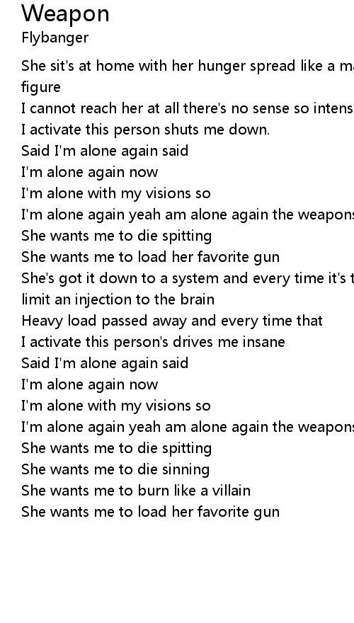 I'm alone again yeah am alone again the weapons in control |
