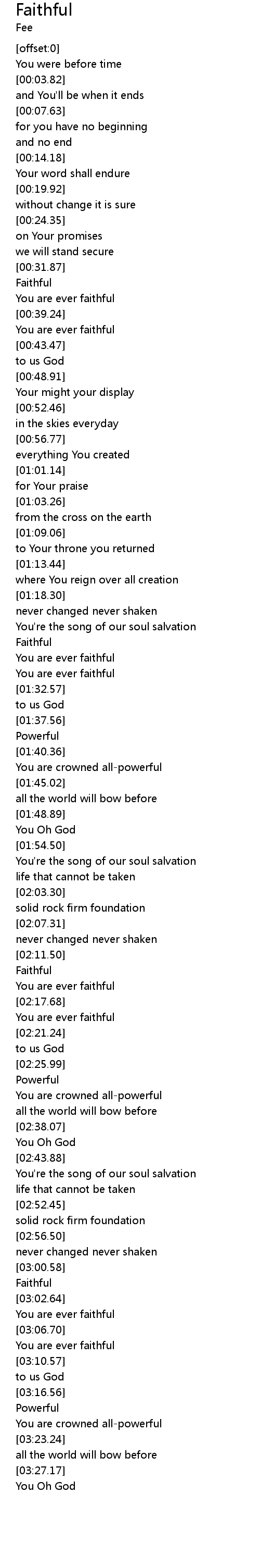 | [03:03.33] | You are ever faithful |