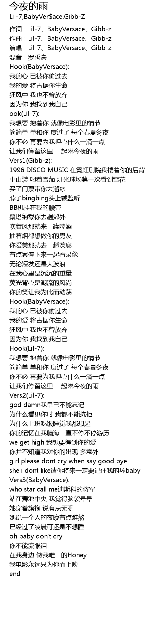 | [00:12.41] | yǎn chàng: Lil7 BabyVersace Gibbz |