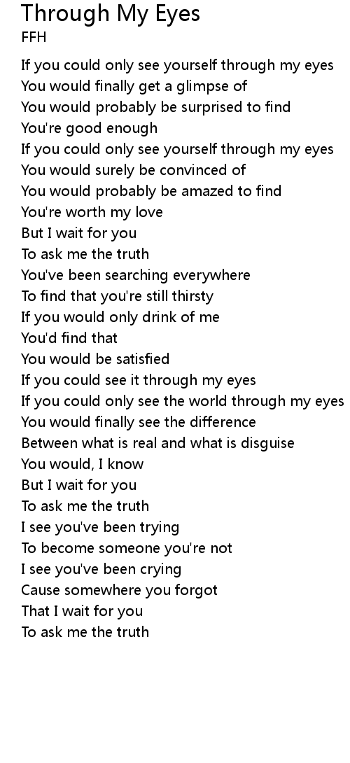 If you could only see the world through my eyes |