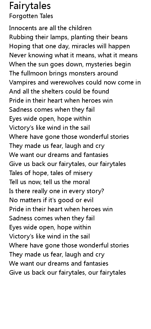 Give us back our fairytales, our fairytales |