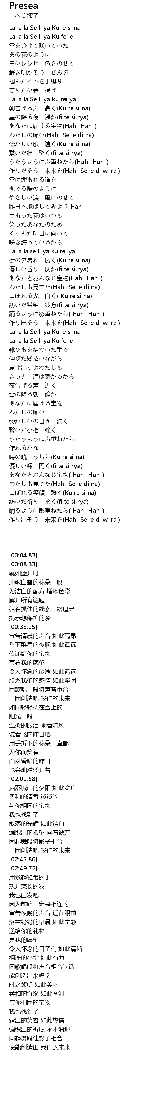 | [02:45.86] | La la la Se li ya Ku le si na |