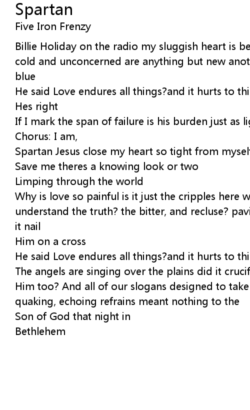 Spartan Jesus close my heart so tight from myself tonight |
