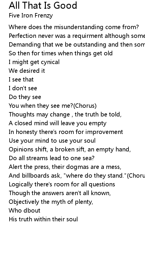All That Is Good Lyrics