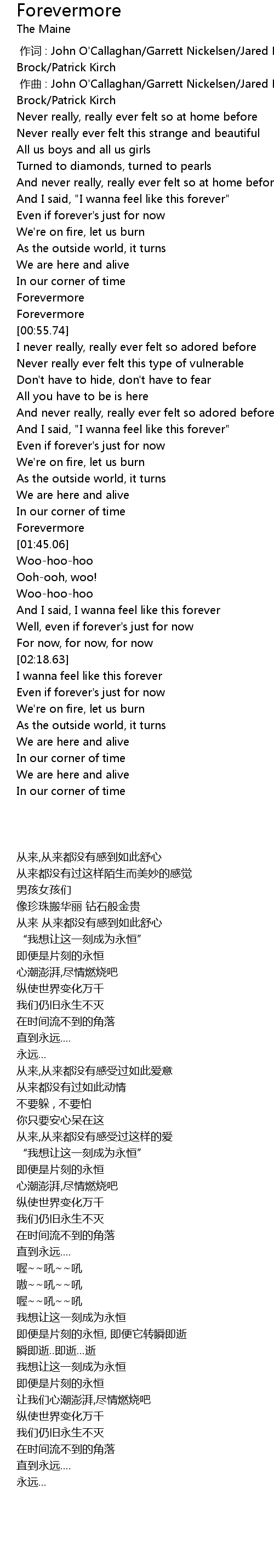 | [01:21.45] | And I said, "I wanna feel like this forever" |