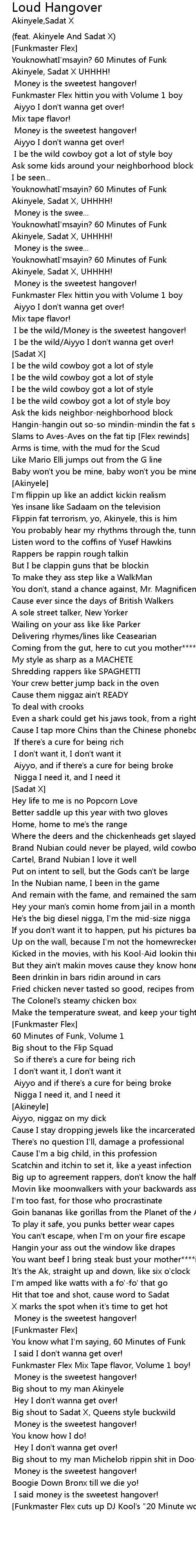 [Sadat X] I be the wild/Money is the sweetest hangover!