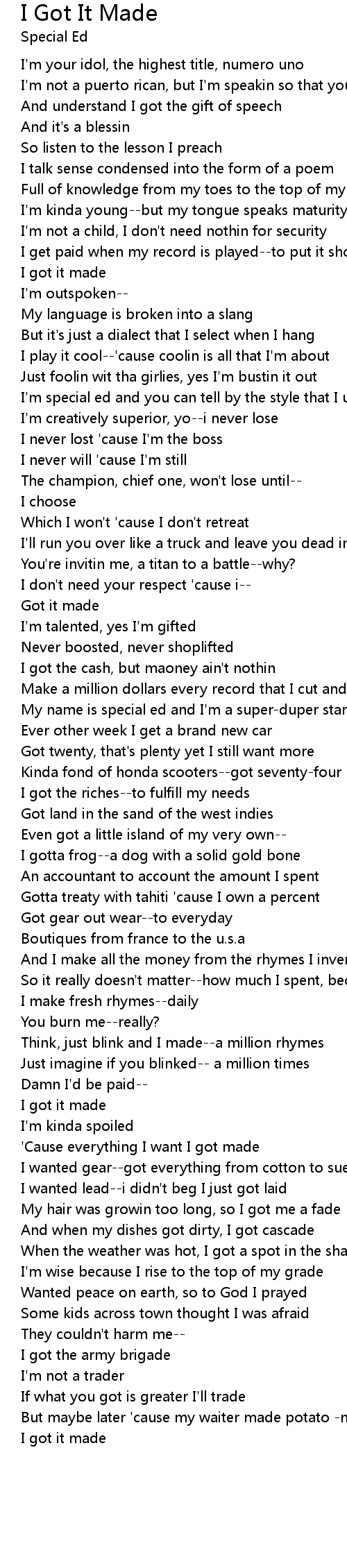I got it made |