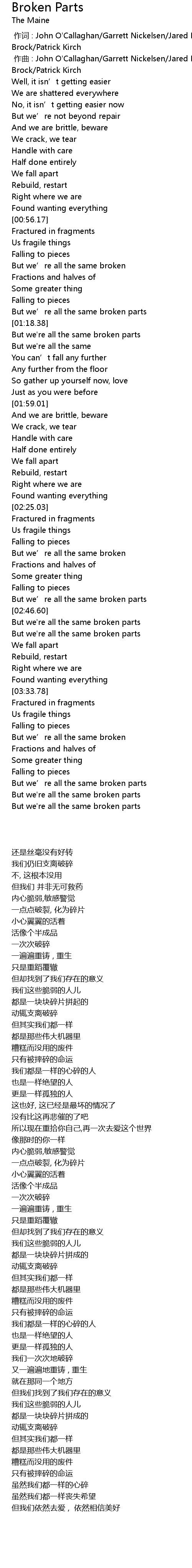 | [02:56.32] | But we' re all the same broken parts |