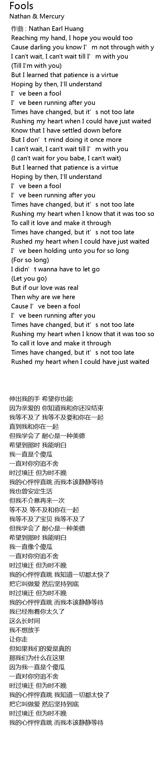 | [00:00.000] | zuò qǔ : Nathan Earl Huang |