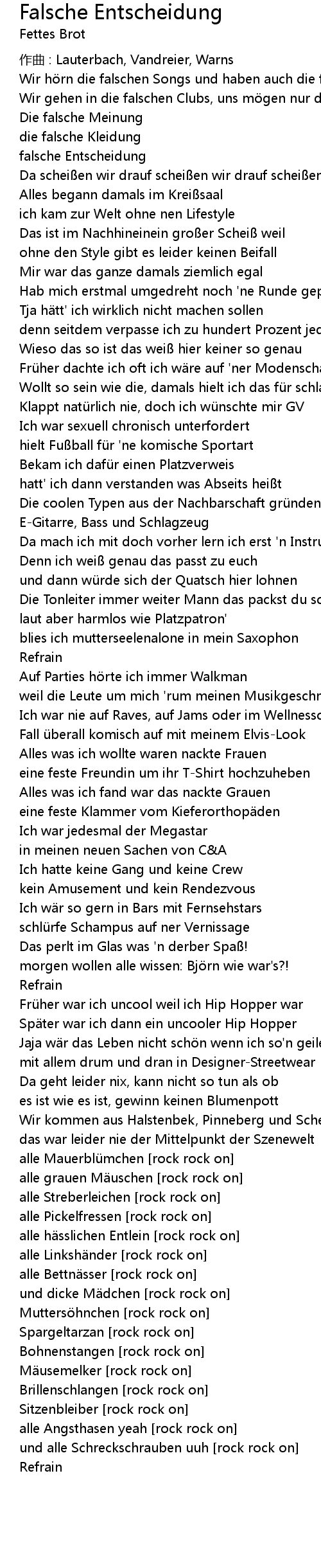 | Song | Falsche Entscheidung |