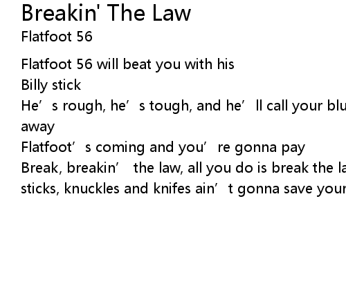 | Break, breakin’ the law, all you do is break the law cheap tricks, jimmy sticks, knuckles and knifes ain’t gonna save your pathetic lives |