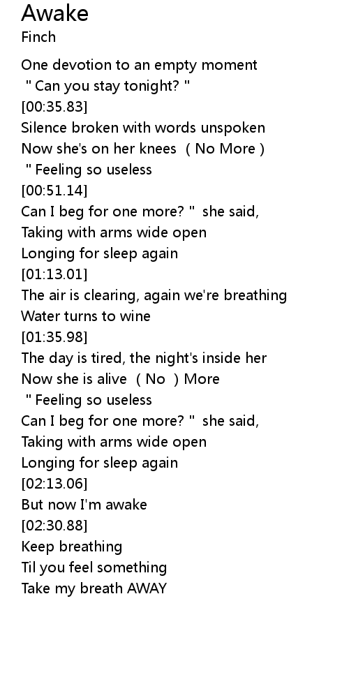 | [02:13.74] | But now I'm awake |