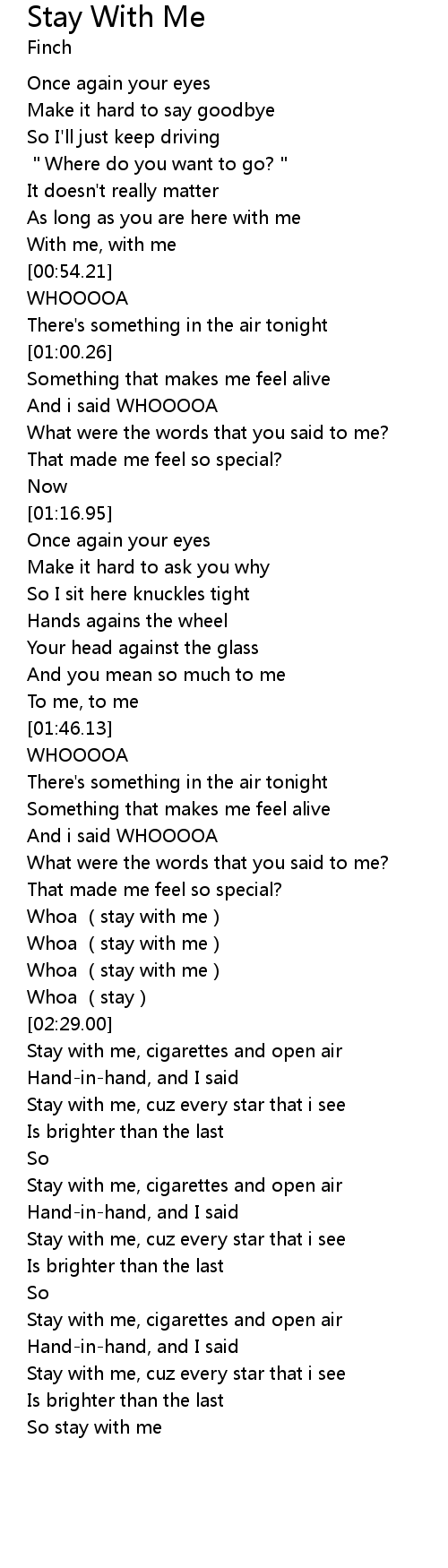 | [02:47.78] | Stay with me, cigarettes and open air |
