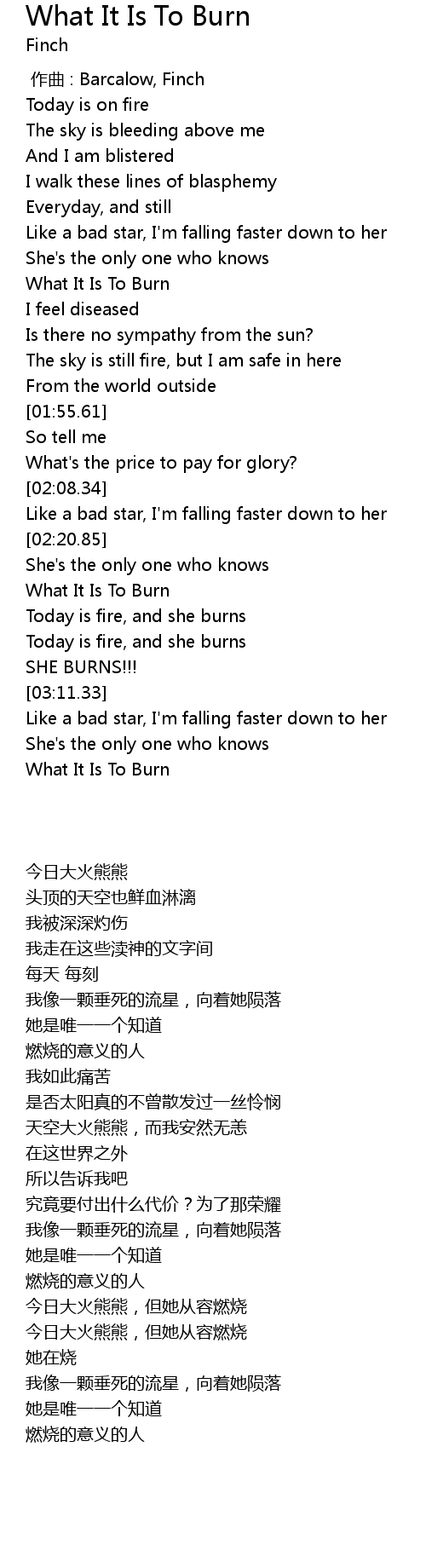 | [03:51.23] | What It Is To Burn |