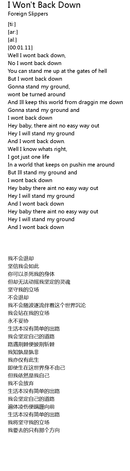 No I wont back down |