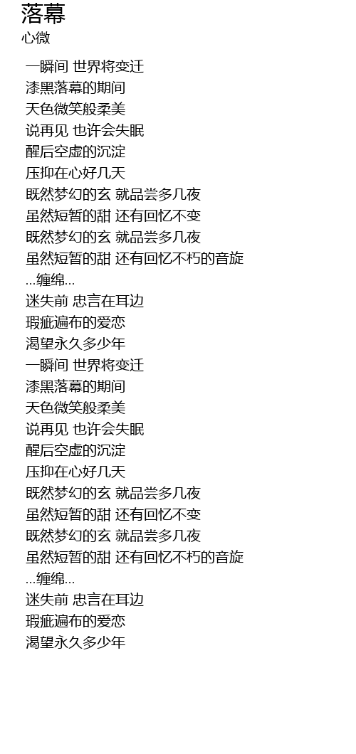 | [01:31.000] | 虽然短暂的甜 还有回忆不朽的音旋 |