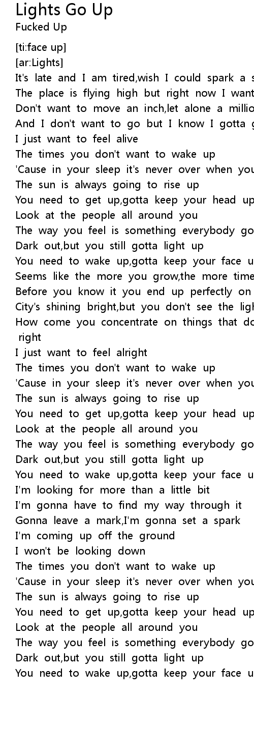 You need to wake up,gotta keep your face up |