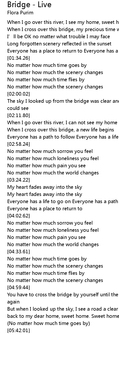| [02:30.70] | When I cross over this bridge, a new life begins |