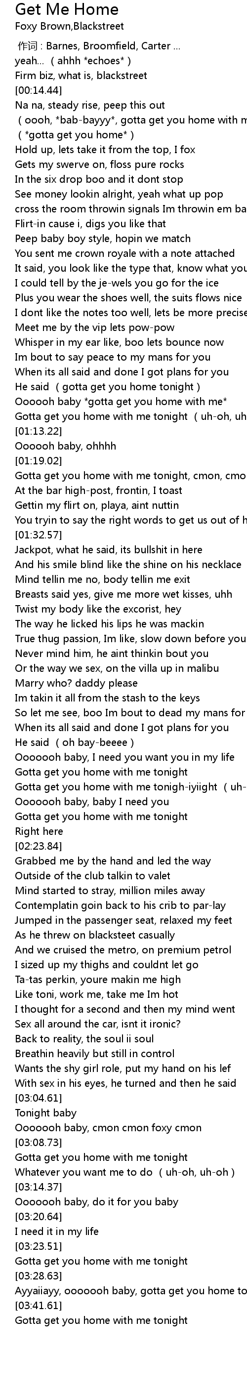 | [03:34.62] | Ayyaiiayy, ooooooh baby, gotta get you home tonight |