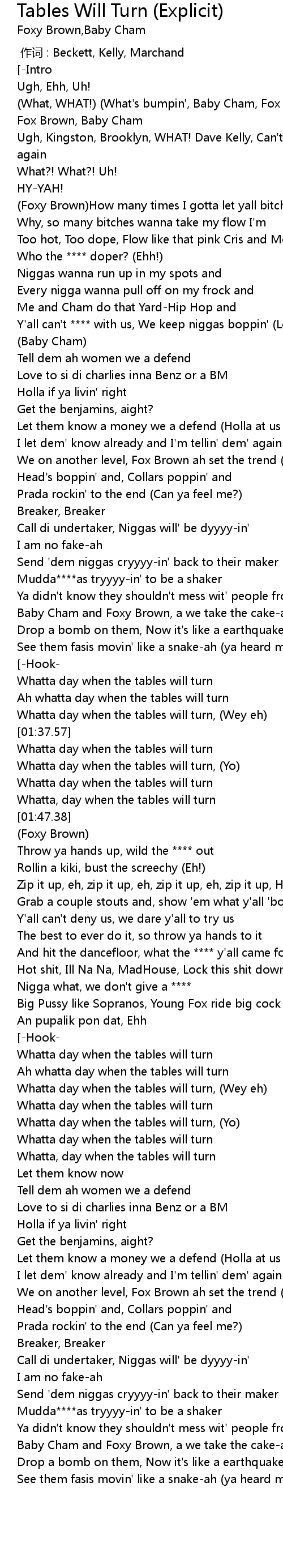 | [00:05.62] | (What, WHAT!) (What's bumpin', Baby Cham, Fox Brown) Uh! |