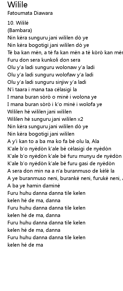 | Nin kè ra bogotigi jani wililen dò ye | |