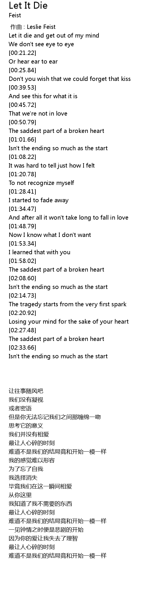 | [00:00.00] | zuo qu : Leslie Feist |