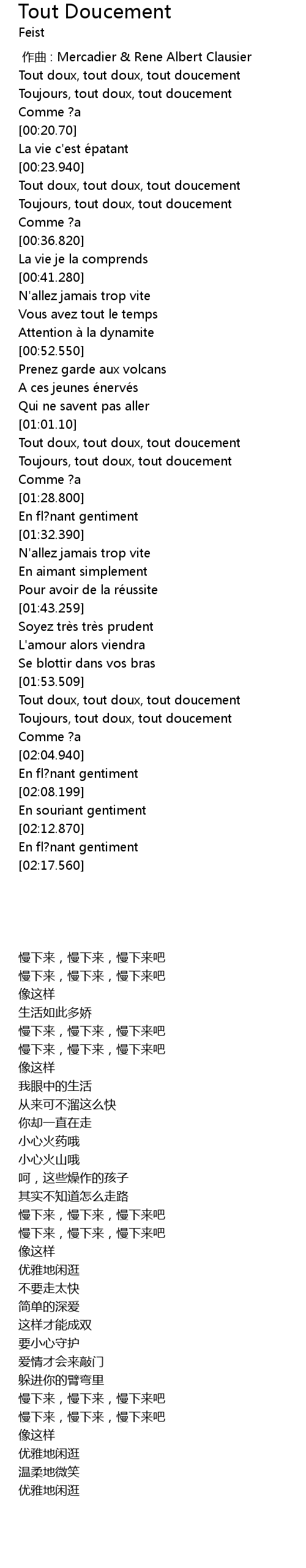 | [01:55.180] | Tout doux, tout doux, tout doucement |