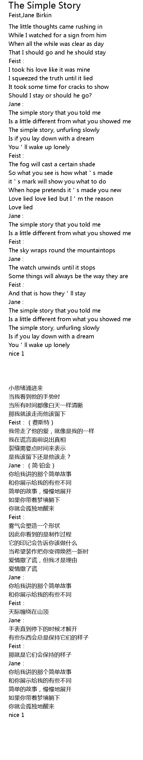 | [01:55.10] | The simple story that you told me |