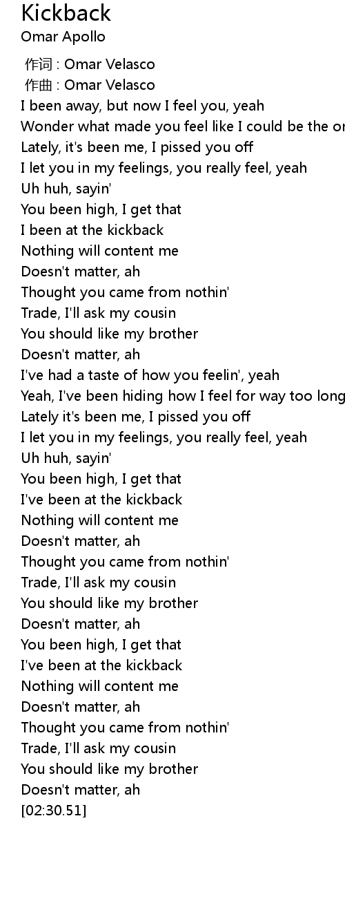 | [01:56.71] | I've been at the kickback |